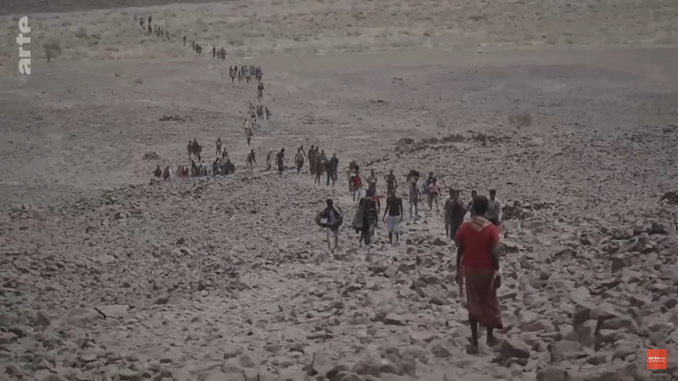 “Solo podemos confiar en nosotros y en la suerte”, dice uno de estos migrantes en el documental “El éxodo de los oromo de Etiopía” (2019): lo que se presenta tantas veces como números aparece en historias. De niños, hombres y mujeres que emprenden la ruta. El recorrido comienza en Galafi, la frontera entre Etiopía y Yibuti. Un camino árido, con 46 grados centígrados y propicio para una de las primeras causas de muerte de los viajantes: la deshidratación.