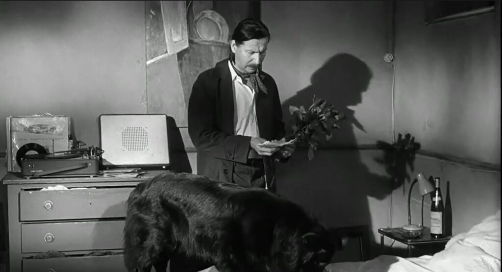 En el film La Vie de Bohème (1992) Rodolfo es un inmigrante albanés que vive en situación irregular en París. La escena que se describe transcurre en una comisaría: detenido durante toda la noche, la preocupación del personaje es su perro y compañero inseparable Baudelaire, y un amor incipiente con Mimí, una mujer con la que habían llegado a proyectar mudarse juntos. Sus pinturas, sus pertenencias y su vida entera quedaría allí sin posibilidad de despedirse.